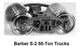 This version of the swing motion caboose truck was manufactured from 1935 to the late 1950s. Originally a proprietary product of the Bettendorf Co., in 1942 the manufacturing rights were acquired by Standard Car Truck Co., who then added their trade name “Barber” to this truck’s name. The prototype had 4¼ X 8” axle journals (30 ton capacity), plain bearings and a 5’-6” wheelbase. Over forty railroads used this caboose truck.