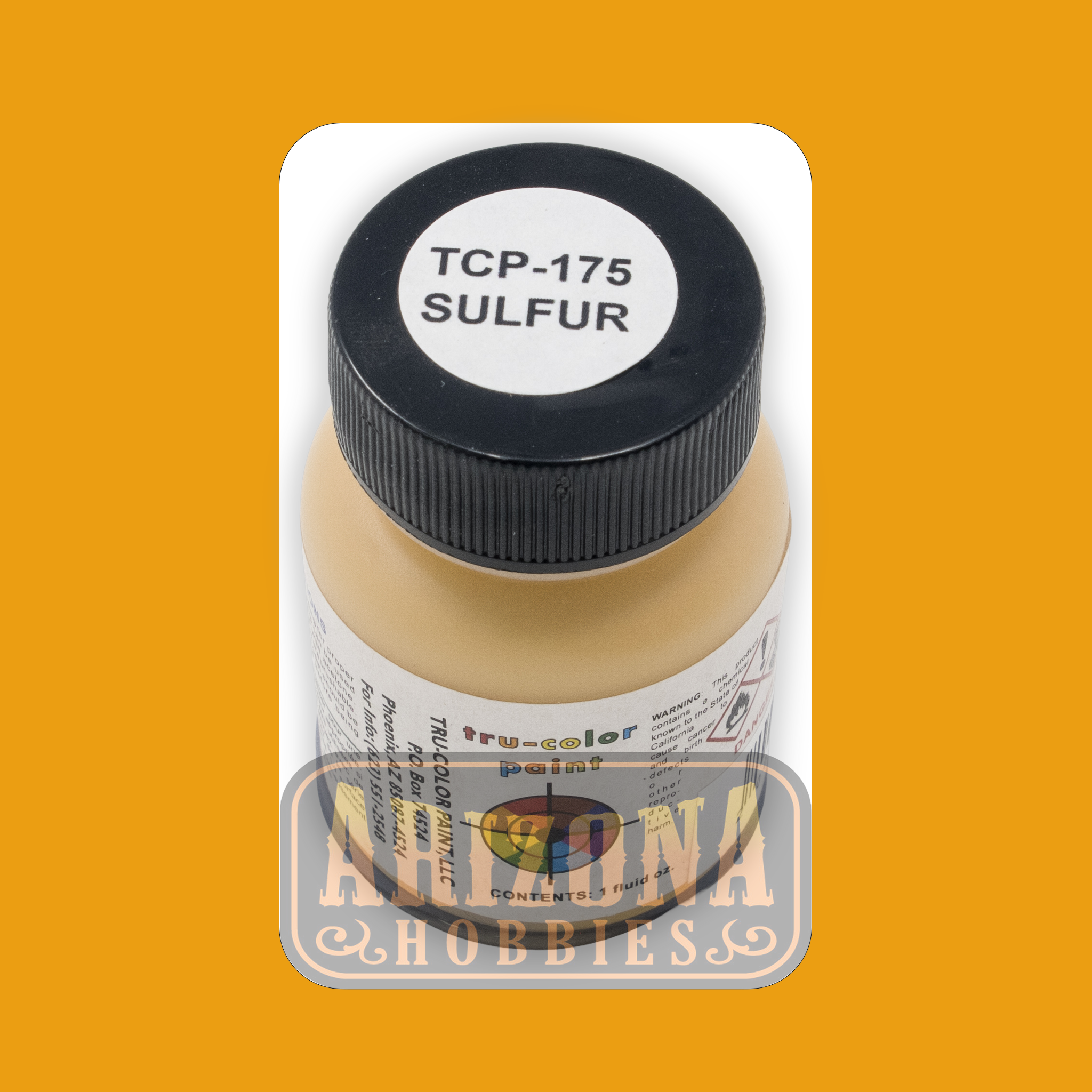 The SULFUR 1-oz bottle Tru-Color Paint is a solvent-based acrylic paint specially formulated for airbrush use. Its pigment is expertly thinned with Acetone and other media to ensure a smooth, even application, making it airbrush-ready but too thin for brush painting.