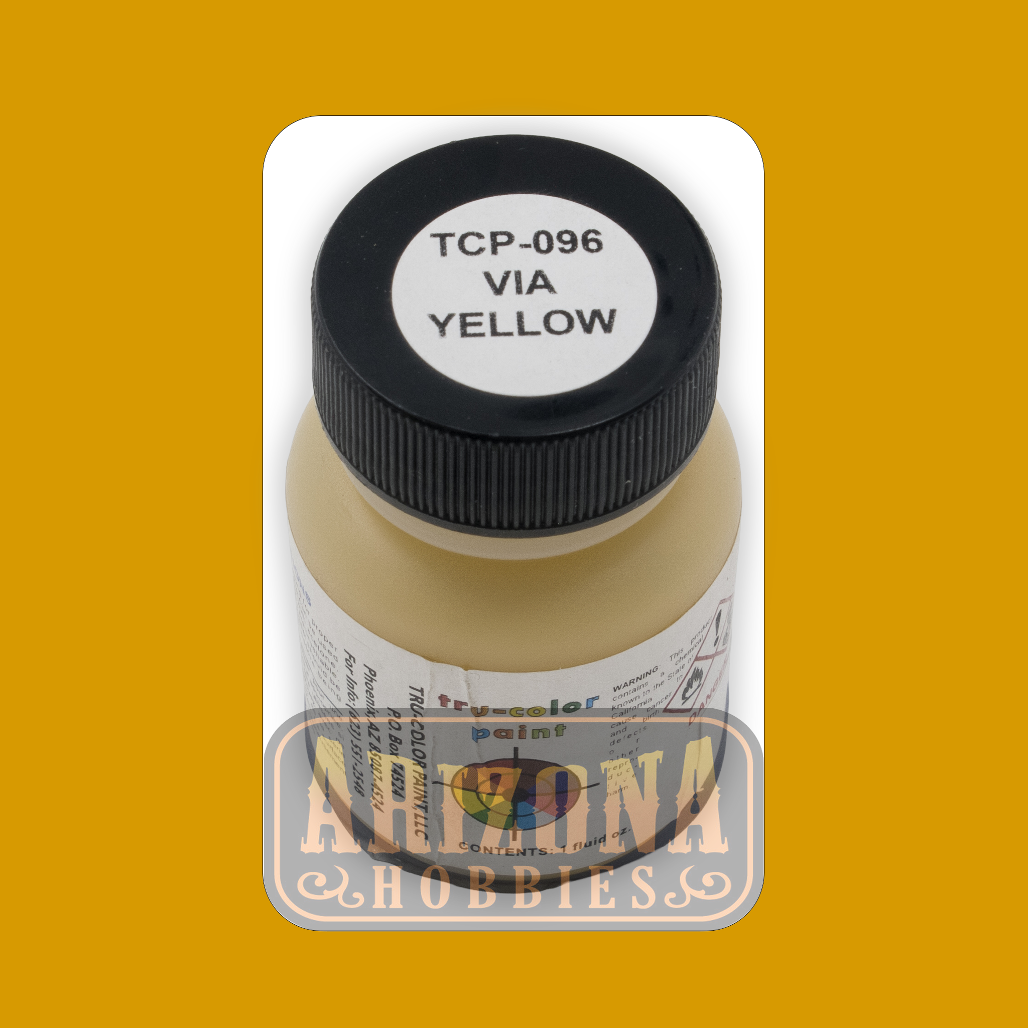 The VIA Rail YELLOW 1-oz bottle Tru-Color Paint is a solvent-based acrylic paint expertly formulated for airbrush applications. This paint features a finely thinned pigment designed for superior coverage and fast drying times.