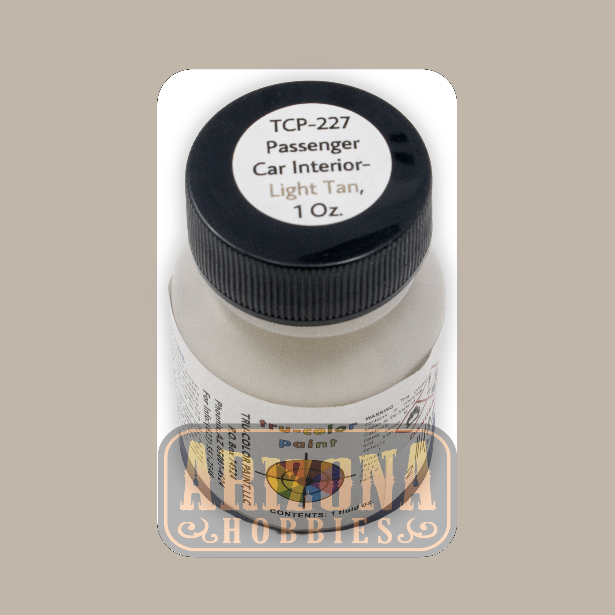 The Passenger Car Interior LIGHT TAN 1-oz bottle from Tru-Color Paint offers a precise and high-quality solution for modelers seeking authentic car interior colors. This airbrush-ready solvent-based acrylic paint is expertly thinned with acetone and other media, providing smooth, easy application with professional results.