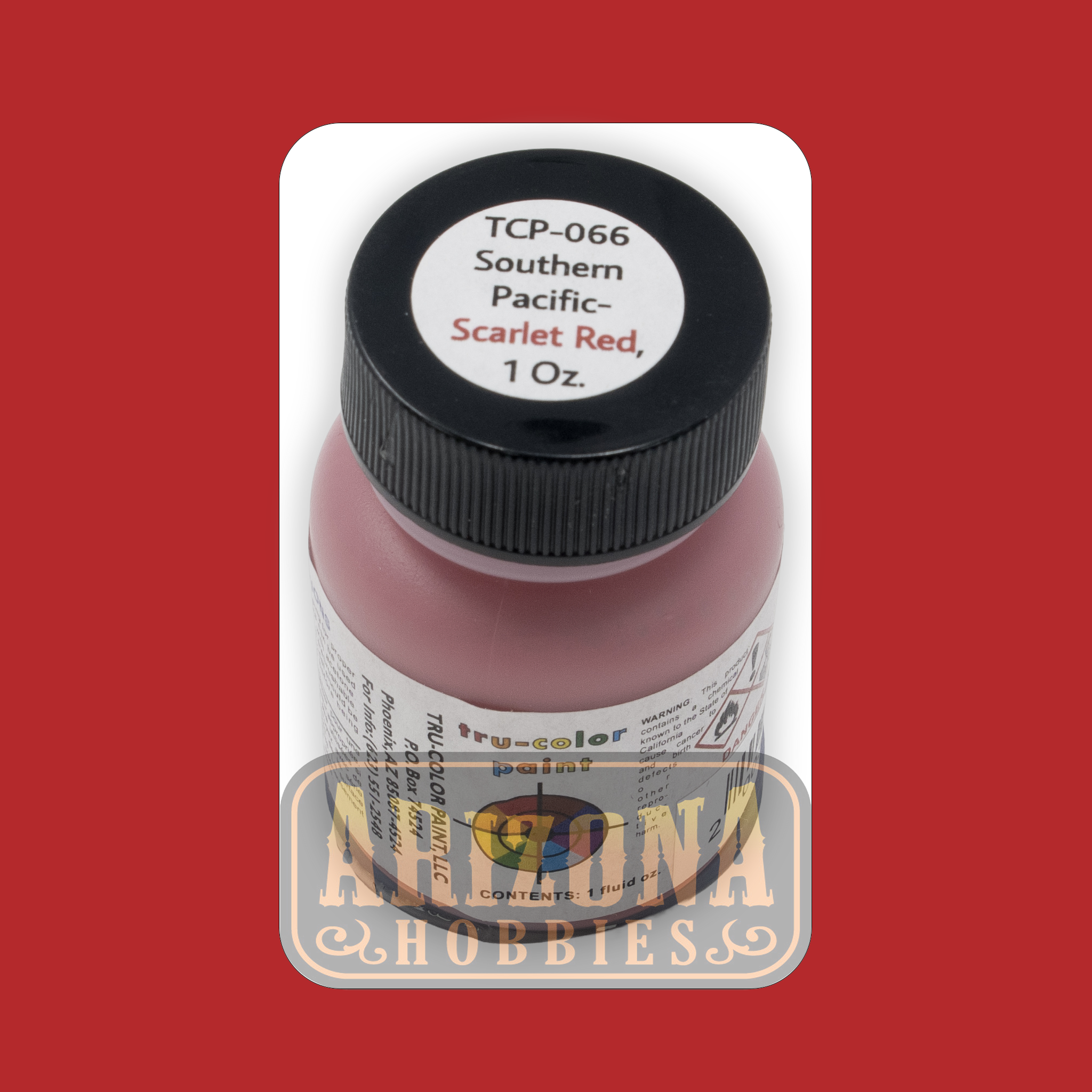 The Southern Pacific SCARLET RED 1-oz bottle is an airbrush-ready Tru-Color paint designed for precision and vibrant color application. This solvent-based acrylic paint is formulated to deliver exceptional coverage and a glossy finish, ideal for modelers and hobbyists seeking top-tier results.